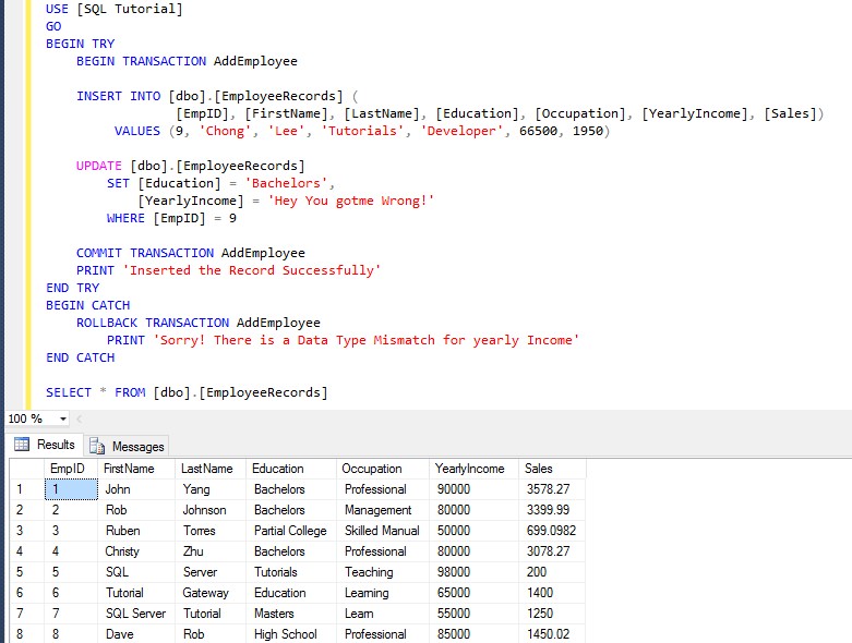 9. Transaction in SQL Server with TRY CATCH